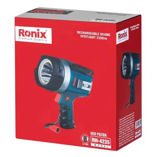 نورافکن شارژی تفنگی 5 حالته رونیکس مدل 4235 محصولی حرفهای و کاربردی از برند رونیکس است که برای روشنایی محیطهای بیرونی در شب، کمپینگ، کوهنوردی، ماهیگیری و همچنین استفادههای اضطراری داخل یا خارج منزل طراحی شده است. علاوه بر روشنایی قوی، این نورافکن قابلیت استفاده به عنوان پاوربانک برای شارژ گوشی و سایر دستگاههای دیجیتال را دارد و به همین دلیل یک محصول دوکاره محسوب میشود.